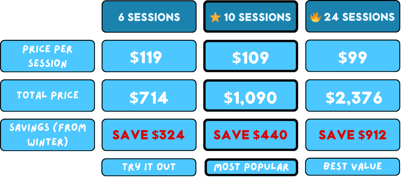 Most clients start with an intro lesson, then upgrade to packages. From beginners to experts, you’ll improve even after one lesson.